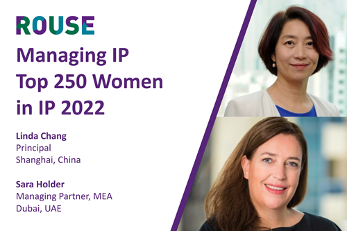 We are delighted to share that our female IP practitioners at Rouse has once again been listed in this year's Managing IP Top 250 Women in IP. Published by Managing Intellectual Property it "recognises female practitioners in private practice who have performed exceptionally for their clients and firms in the past year."
