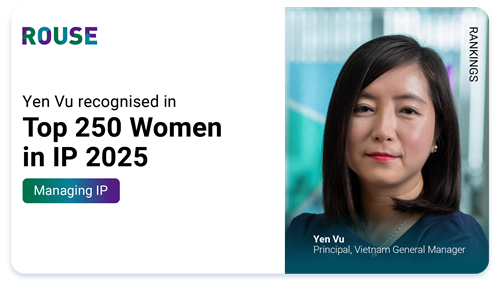 As part of the release of the results from MIP, we were very pleased to see that Yen Vu, Vietnam's General Manager, was included in the Top 250 Women in IP.