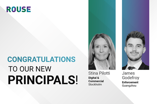 “The appointments are not just a celebration of James and Stina’s hard work and dedication to the business, but they also demonstrate Rouse’s dedication to excellence in the IP sector — in both its established and new services and jurisdictions.”