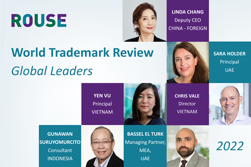 In other news, Linda Chang, Sara Holder, Chris Vale, Yen Vu, Bassel El Turk and Gunawan Suryomurcito have been as World Trademark Review Global Leaders of 2022. We are delighted to have our people recognised year on year by WTR as leading industry experts. Well done all.