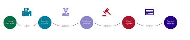 In exceptional circumstances you may consider a litigation, which is not always cost-effective. We retrieved a dozen court judgments of civil litigations driven by customs seizures in China and found on average, 261 days were needed to finish a proceeding (see below). It can easily take more than one year to eventually get the compensation money, which might lead to cash flow issues.