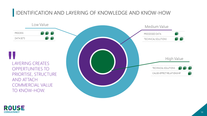 In the case of trade secrets it is difficult to collaborate with a third party if there is no transfer of information. Nobody wants to buy a pig in a poke. Information simply has to be transferred providing that we want to continue a discussion. A method of deciding on what information to transfer is the layering of information in different layer. Each layer is attributed a sense of value and perhaps a description of what type of data we attribute to each layer. This gives the information owner the opportunity to categorize what data potentially is a give away and what is absolutely not. Core trade secrets are perhaps technical “cause effect” relationships which do not come to the immediate awareness of the entity while focus is too much on technical solution which may not be as important. Having done this exercise will also aid in potential IP-decisions where third party protection, which IP provides, will override the disadvantage of being in the public domain, but giving bargaining power. Layering creates opportunities to prioritize, structure and attach commercial value to know-how. Layering also gives us a more structured possibility to foresee the nature of the terms for the result, foreground, side ground, etc. based upon the background. All because the value of the know-how is more apparent.