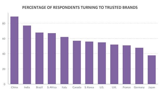 A recent study by Edelman found that 60% of those surveyed across 12 countries were turning more and more in times of crisis to brands that they were “absolutely sure” they can trust. That proportion is even more striking in China, a huge consumer market likely to lead us out of this downturn, where 89% of those surveyed agreed with that statement.