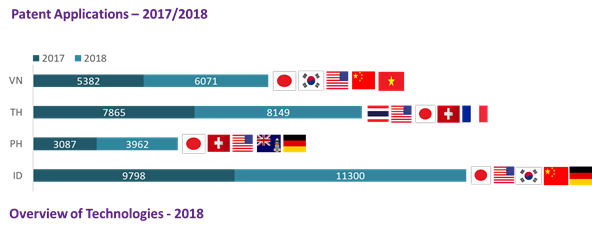 Indonesia is the largest recipient of the overseas patent filings. It is attractive as one of the largest markets with the world's fourth largest population.