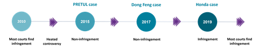 Judicial precedent in China has witnessed a long evolutionary transition regarding applying laws for addressing OEM-related trade mark infringement. For example, judicial decisions made by the Supreme People's Court of the PRC ('the SPC') on three (3) retrial cases, namely, the PRETUL case in 2015, the Dong Feng case in 2017, and the Honda case in 2019 have together provided guiding significance to the judicial adjudication in such matters.