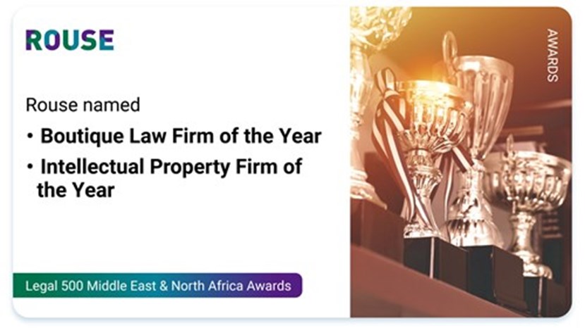 At last week's Legal 500 Middle East and North Africa awards, Rouse was delighted to receive 2 awards for Intellectual Property Firm of the Year and the inaugural Boutique Law Firm of the Year. Many congratulations to our teams in the region!