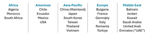 In the MENA region, there is no published data except in Saudi Arabia, where Saudi Authority for Intellectual Property (SAIP) regularly publishes seizure statistics. However, our own CHORUS data shows that, within the region, Algeria, Bahrain, Jordan, Morocco, Saudi Arabia and in particular, the UAE, see consistent seizures.  It is notable also that for the first time UAE appeared in the EU IPO report as the 3rd most common origin country for counterfeit goods, after  Mainland China and Türkiye. As the UAE is a major transit hub, this is hardly surprising.