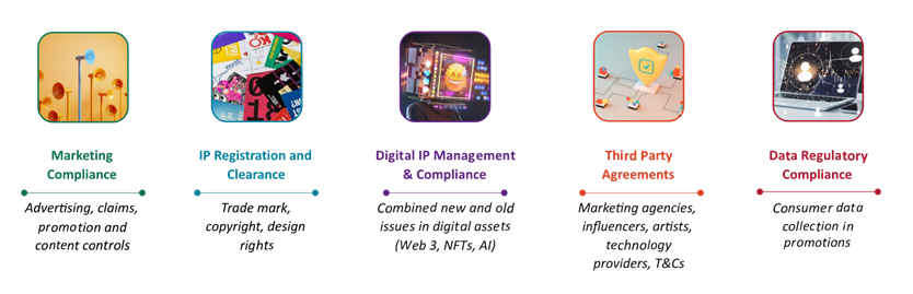 • Compliance with marketing regulations: ‘lucky draw’ rules; advertising to minors; gaming sector controls, and content controls