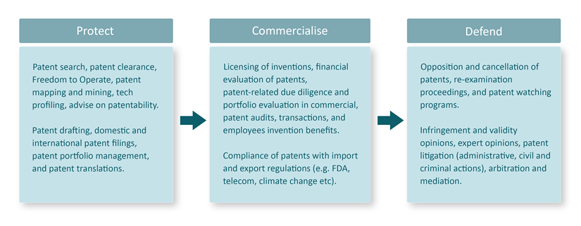 We enjoy the detail of patenting an invention as much as inventors and offer a multidimensional perspective by incorporating our learnings from patent litigation and licensing into patent prosecution (e.g. claims structure, amendments strategy etc.) as well as experience gained in-house.